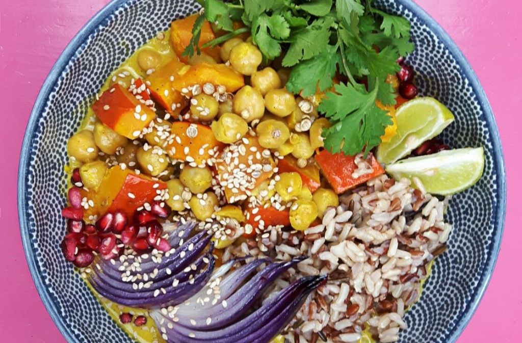 Ein balancierendes, wärmendes Wintercurry ist zum Beispiel dieses Kürbis-Kichererbsen-Curry. Bei beeinträchtigter Verdauungskraft empfiehlt es sich, weniger Kichererbsen zu nehmen und sie mit Kürbis zu ersetzen. Das Rezept reicht für 4 Personen.