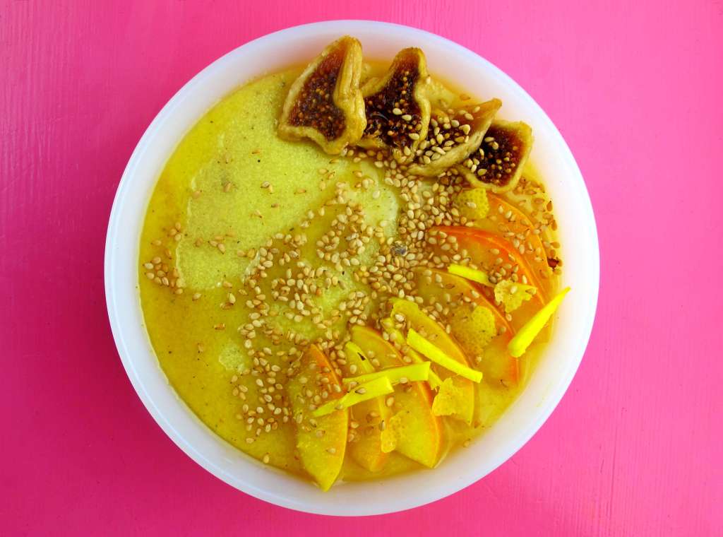 Porridge in eine Schüssel geben. Mit Sesamsaat bestreuen. Bei Bedarf Ahornsirup darüber geben.