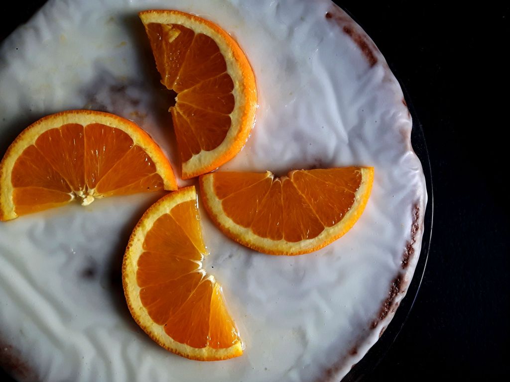 Wenn der Kuchen abgekühlt ist, Puderzucker und Saft vermengen und eine gleichmäßige Glasur auftragen.