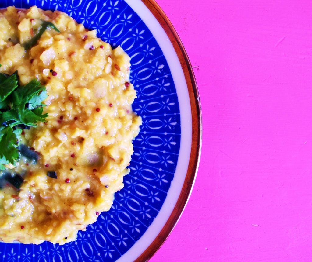 Nach ca 25 Minuten den Wasserstand überprüfen. Den Dal rühren, wenn die Linsen weich sind. Mit Salz und Zitronensaft abschmecken. Mit frischem Grün versehen.